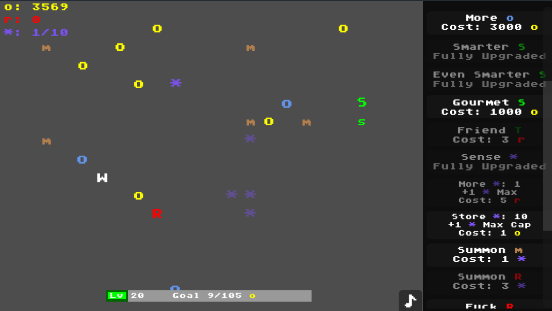 - Persistence: Upgrades are permanent and the game is auto-saved every 10s, so you never lose your overall progress.
